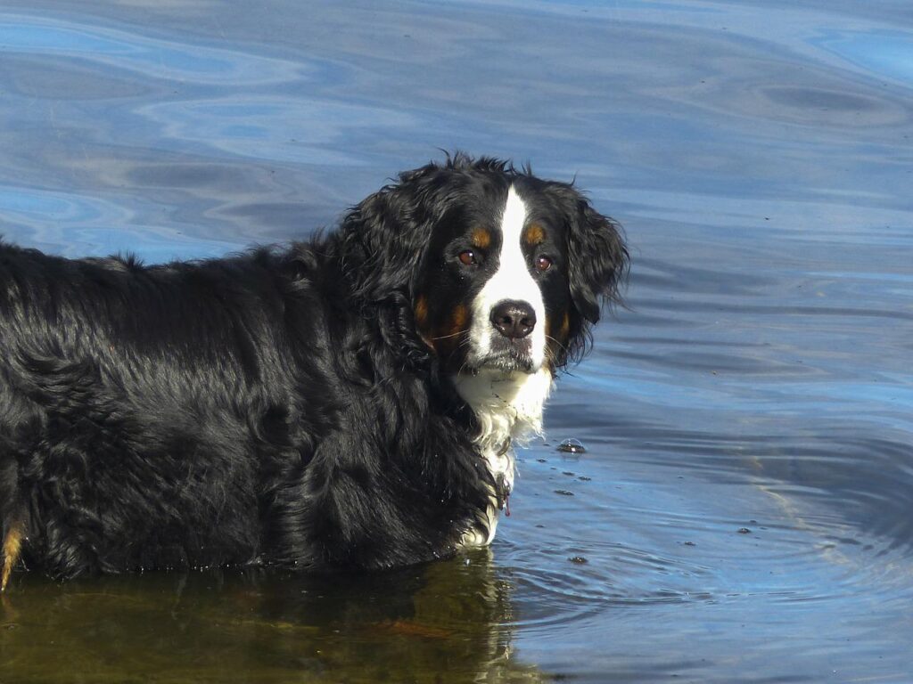 The size and appearance of Bernese inspire many pet owners. They are large and weigh between 70 and 115 pounds. Their height will be between 23 and 27.5-inch tall at the shoulder. Also, you can connect to their expressive brown eyes and appreciate their presence. They are alert, intelligent, and friendly. These qualities make them perfect family companions. As stated earlier, Bernese has a moderately long and tricolored coat and markings. The coat of this breed is either straight or a bit wavy.